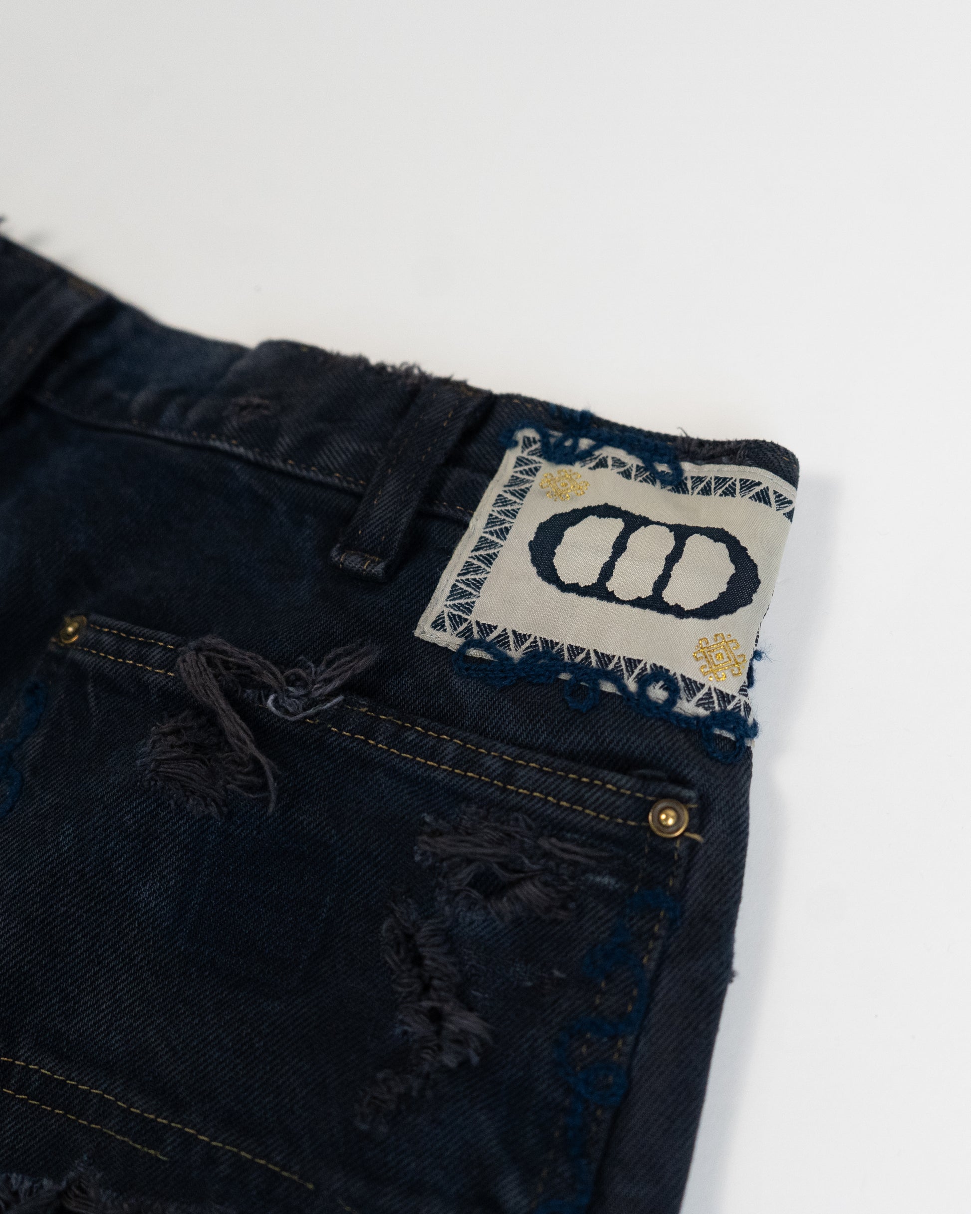 Techniques used: Repair stitching / In house wash / Cursive chain stitching