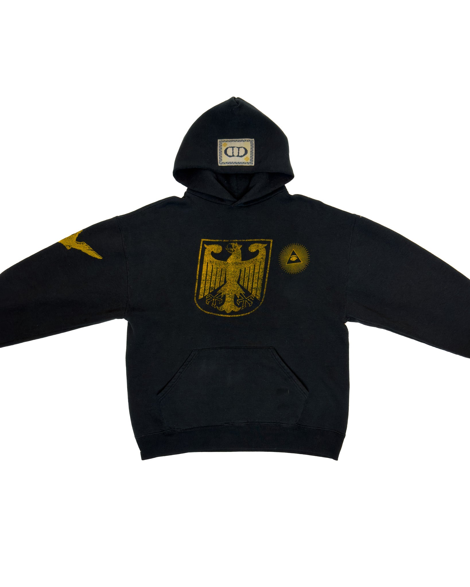 - Yellow screen printing and embroidery details
